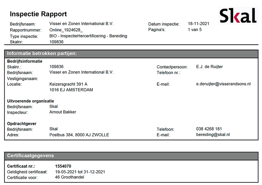We have been certified Skal (Dutch organic) and is in the process of completion A2A2 certification do issued by Control Union. cấp.